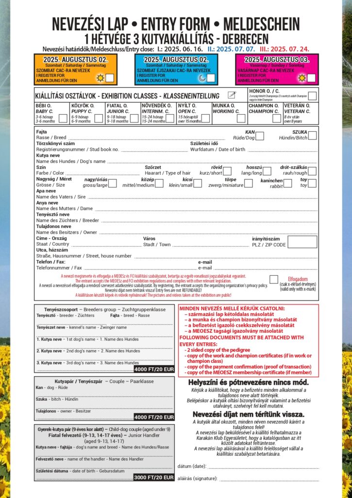 By submitting the entry form the exhibitor authorizes the Hungarian Kennel Club is to catalog the display of the data presented here.