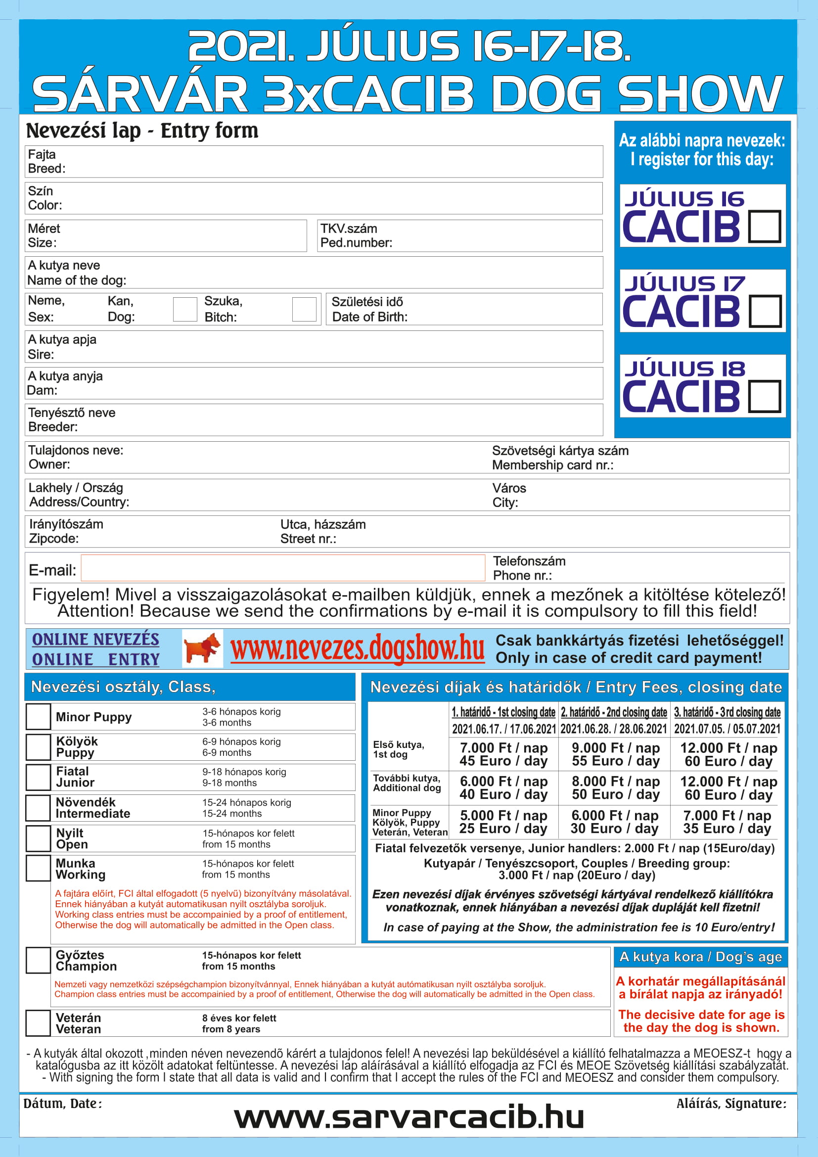 3 x CACIB Dog Show Sárvár online-entry is available, please, click>>