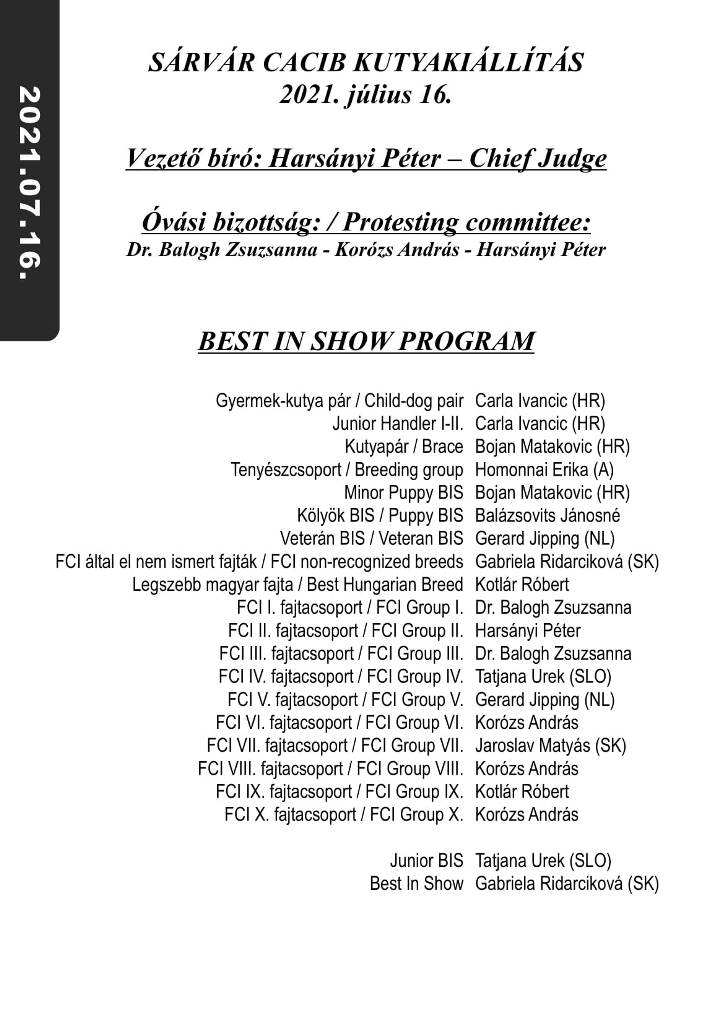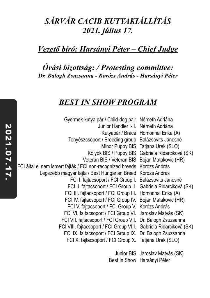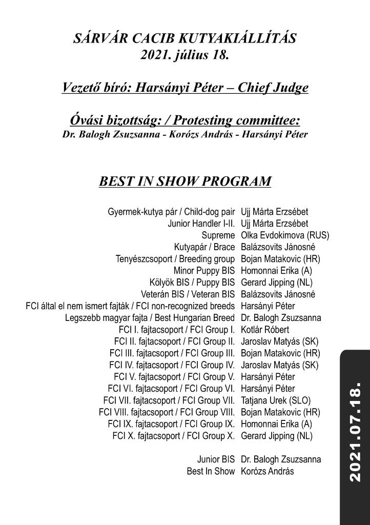 3 x CACIB International Dog Show in Hungary in Sárvár organized by the Hungarian Kennel Club from 16 to 18 July (Friday, Saturday, Sunday) of 2021. Venue: Sárvár, Vadkert Major.