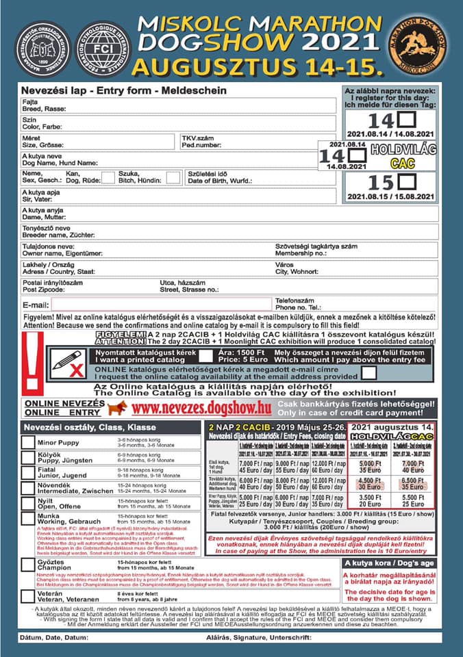 On 14th & 15th August of 2021 Marathon Dog Show will be held in Hungary in Miskolc. Under 2 days 3 dog show, 2 International Show + one National Show are waiting for the exhibitors and visitors.