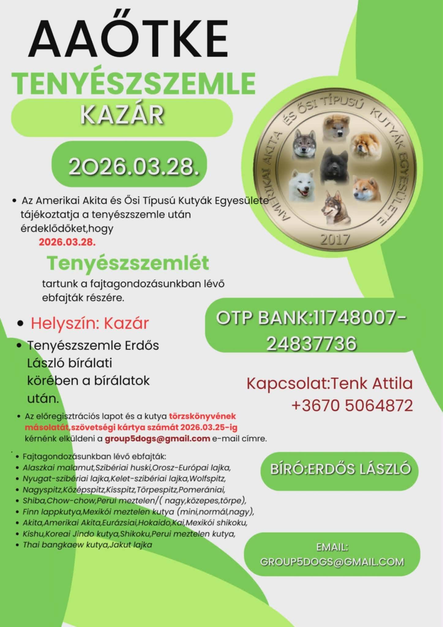 Kazár CAC II. kiállítás, 2026. március 28 – szombat délután, online nevezés>>