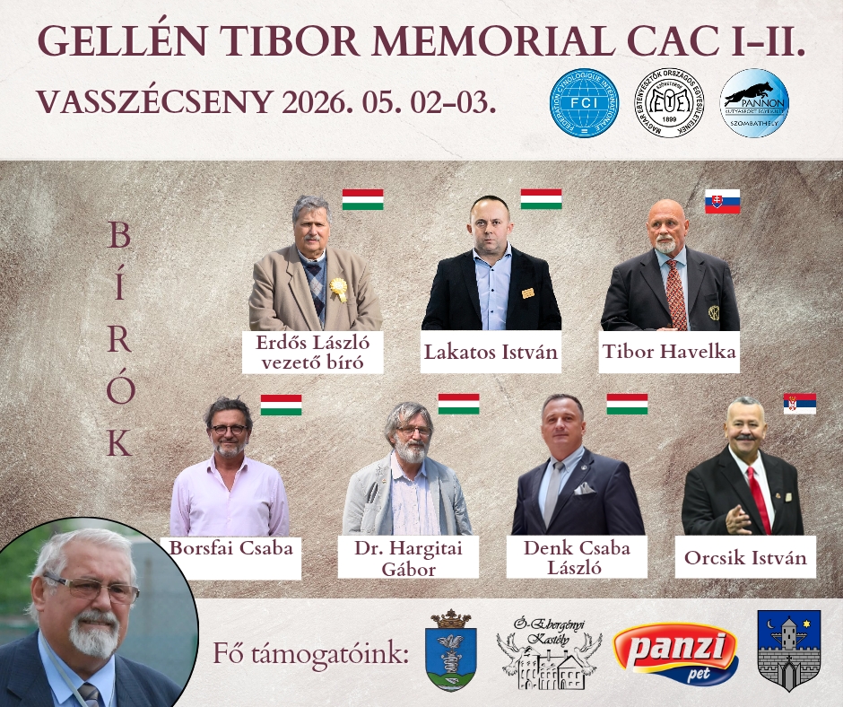 Tibor Gellén Memorial CAC I-II. Dog Show will be held on 02th and 03th May of 2026 in Hungary in Vasszécseny! 2 days 2 CAC shows waiting for the exhibitors in Vasszécseny (13 km southeast of Szombathely), in the ancient park of Ó-Ebergényi Castle.