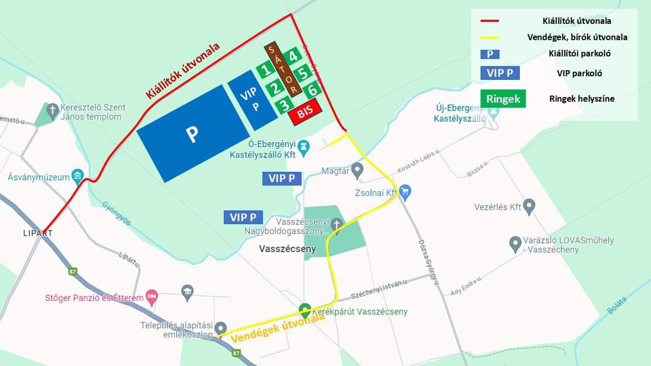 Zufahrt: In Vasszécseny, in der Gyöngyös-Straße, von der Hauptstraße abbiegen und über den asphaltierten. Wirtschaftsweg zum Gelände fahren. Die landwirtschaftliche Straße wird morgens und nachmittags unidirektional sein. Folge den Zeichen! Ausstellungsparkplatz hinter dem Schloss, Besucherparkplatz an der Wirtschaftsstraße.